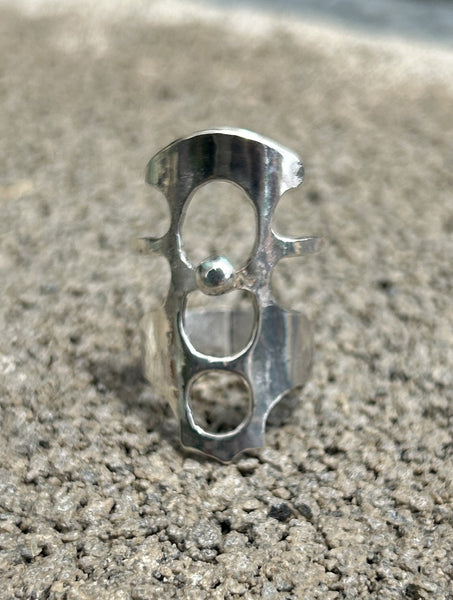 Sterling silver sculpture inspired by bone fragments and organic architecture. Each piece explores elemental forms