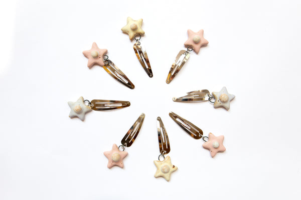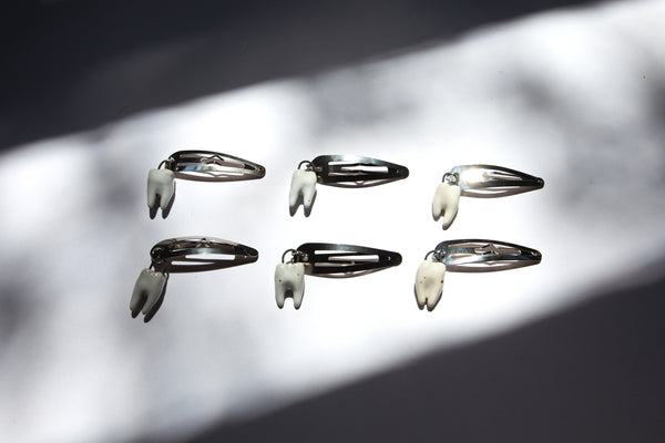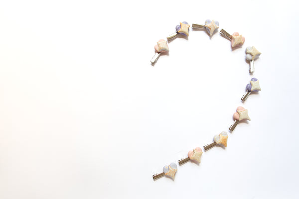 Materials: Glazed stoneware, alligator hair clip, elastic hair tie