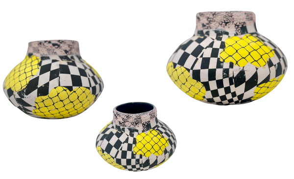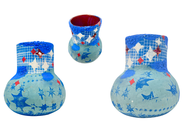 Recommend hand wash. All of the pieces are created by hand using a mixed media approach that incorporates digital drawing, screen printing, stenciling, and painting onto the clay. Ruby is interested in exploring surface design and decoration to create unique, one of a kind pieces.