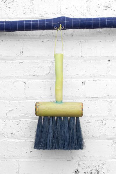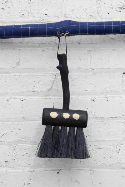 Each hand broom is made from a natural stick handle, a carved pine wood body, and tampico fiber bristles, hand-dyed using batik techniques. Whether you're sweeping up crumbs, clearing your altar, or simply adorning your space, these brooms bring a touch of magic to the everyday. No two are alike—choose the one that calls to you.