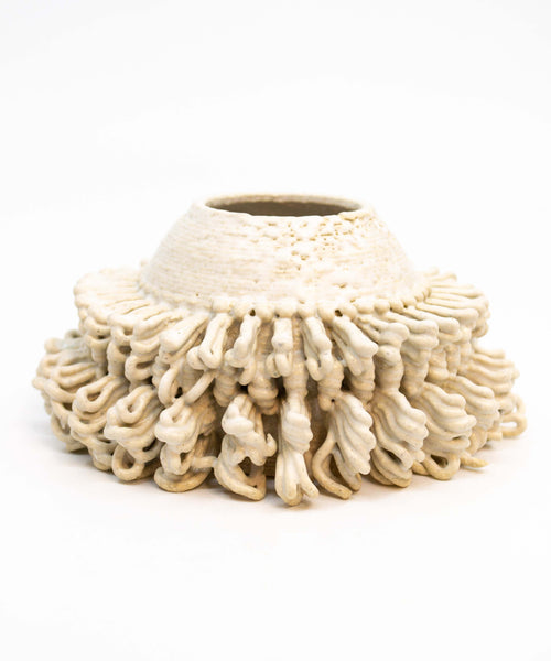 Delicate 3D-printed ceramic form with varied glazes and tactile textures, each piece stands gracefully as sculptural art—ideal for a windowsill, display shelf, or any quiet corner. Place a small plant or personal object to the center for a touch of your own creativity.