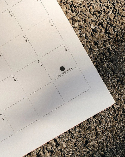 A 13 page calendar featuring twelve of Alexa Viscius’s photographs, one for each month, plus a cover. Each image can be cut out and repurposed or framed after the month is over. Moon phases are marked on every month.