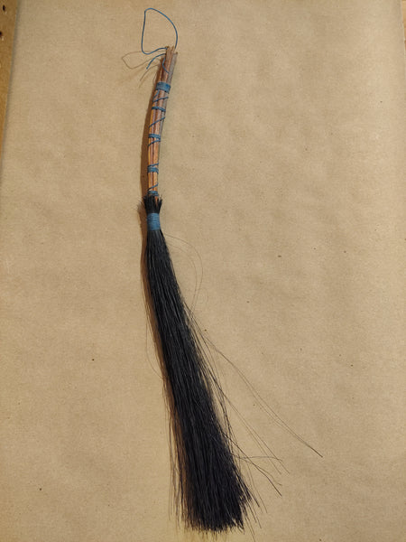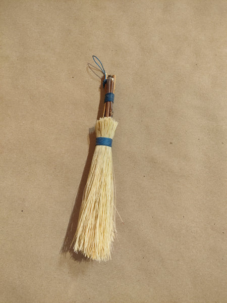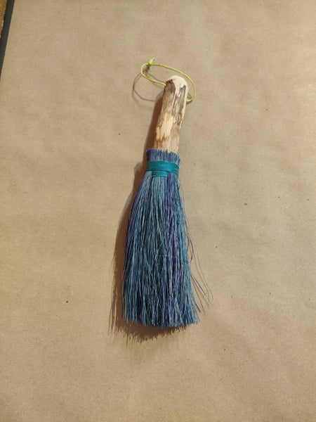 Each hand broom is made from a natural stick handle, a carved pine wood body, and tampico fiber bristles, hand-dyed using batik techniques. Whether you're sweeping up crumbs, clearing your altar, or simply adorning your space, these brooms bring a touch of magic to the everyday. No two are alike—choose the one that calls to you.