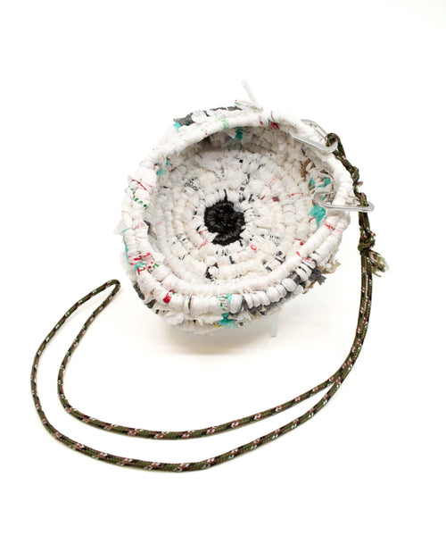 Dimension: Range in 5-9” diameter x 2” high Material: Hand made Coil basket from Upcycled Plastic bags with cover. Comes with Rope and Caribiner HooksGrandpa Dirt(McKinley Park)